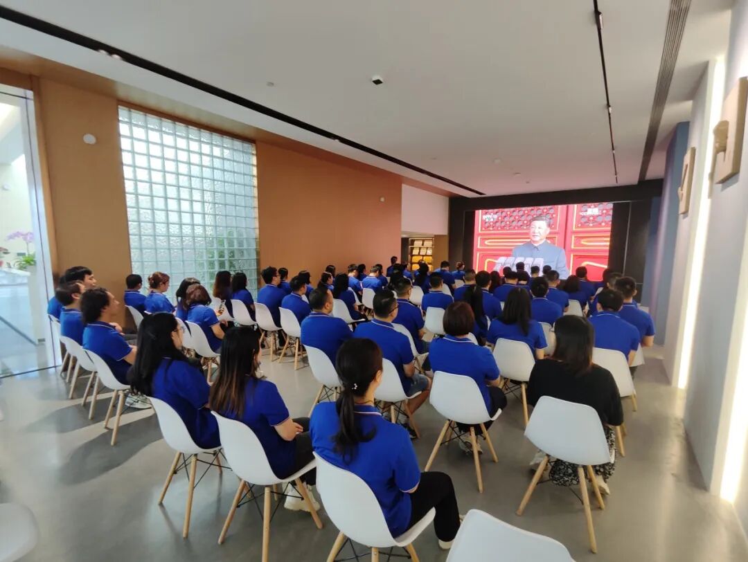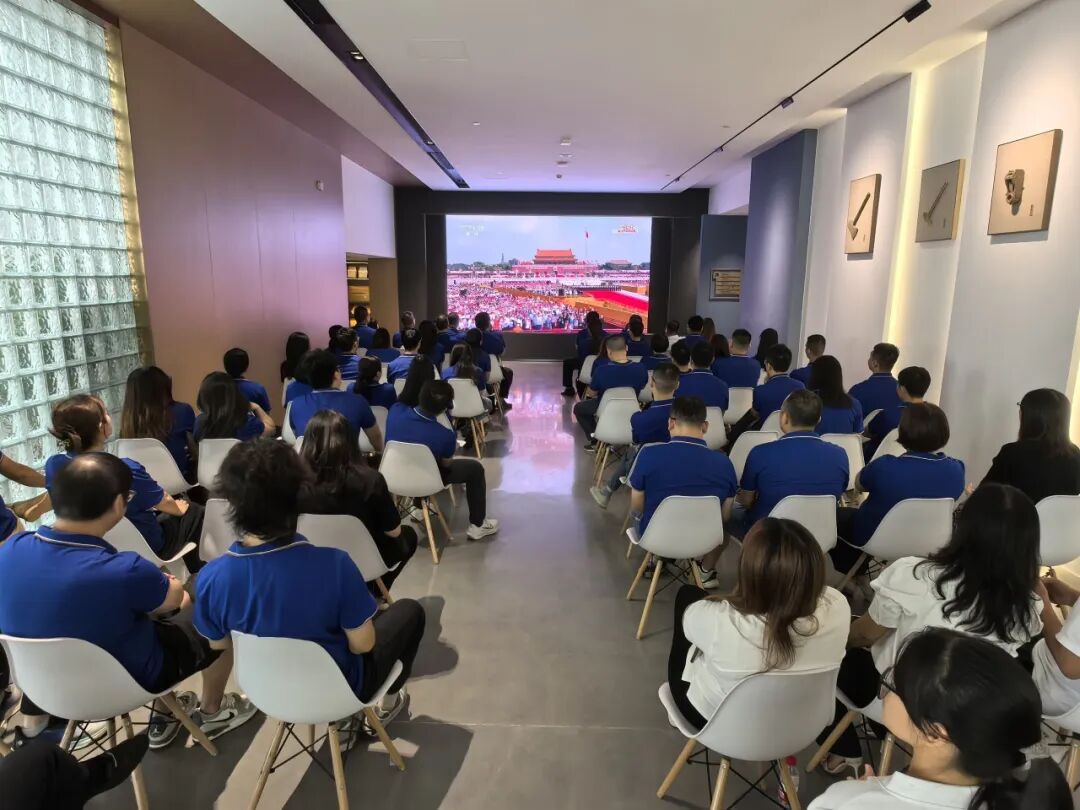 集团向导、总部党员及员工与洛浦街商会党支部成员一起寓目阅兵直播,配合见证这一庄重盛大的历史时刻。