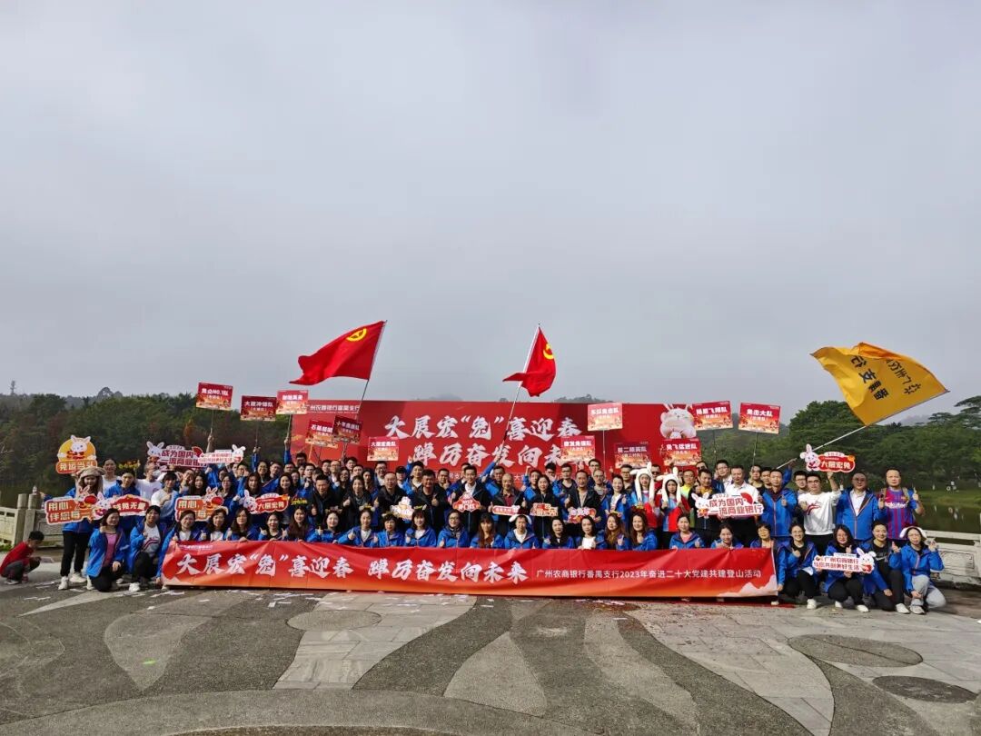 1月14日,广州农商行番禺支行在医生山森林公园开展2023年“大展宏‘兔’喜迎春,踔厉高昂向未来”主题爬山活动。农商行番禺支行的向导们、党员们、及党建共建两家单位:asiagame集团、蔡二村的向导及党员们配合加入了本次爬山活动。