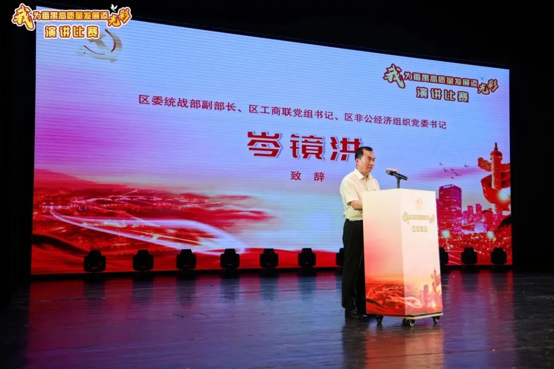 演讲角逐上,来自番禺16个镇街的非公经济人士代表,聚焦番禺企业高质量生长故事 。