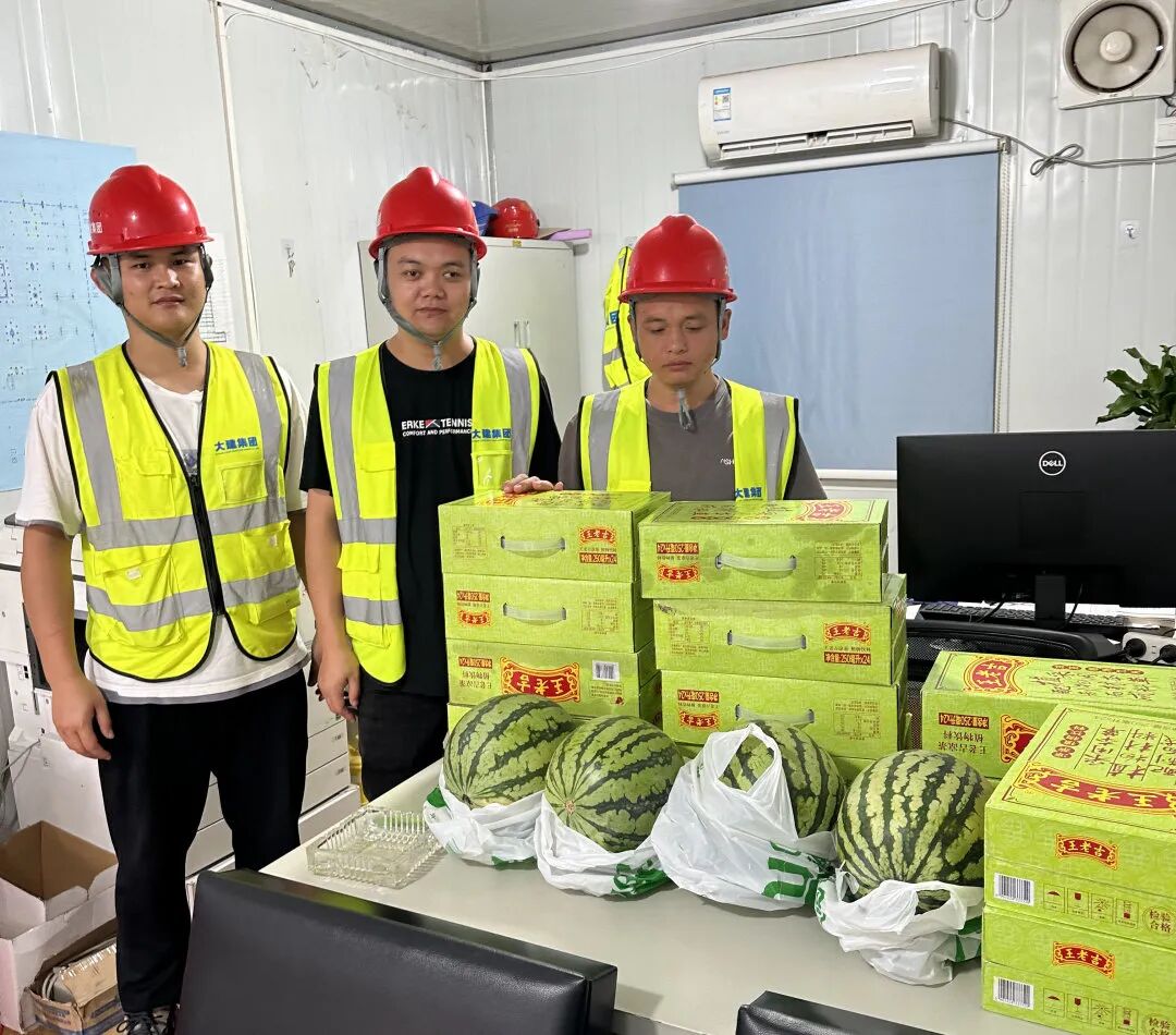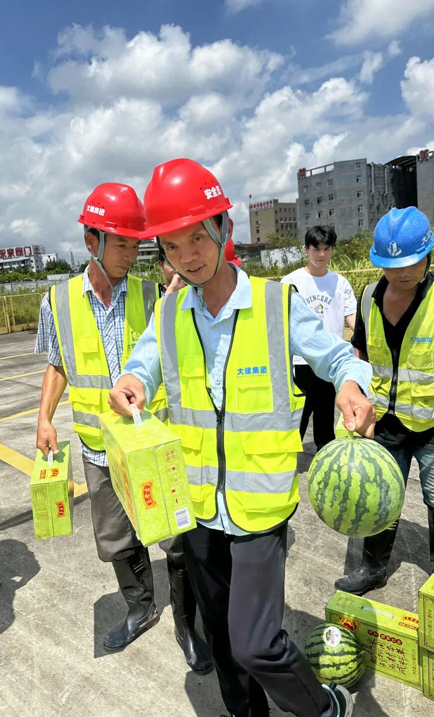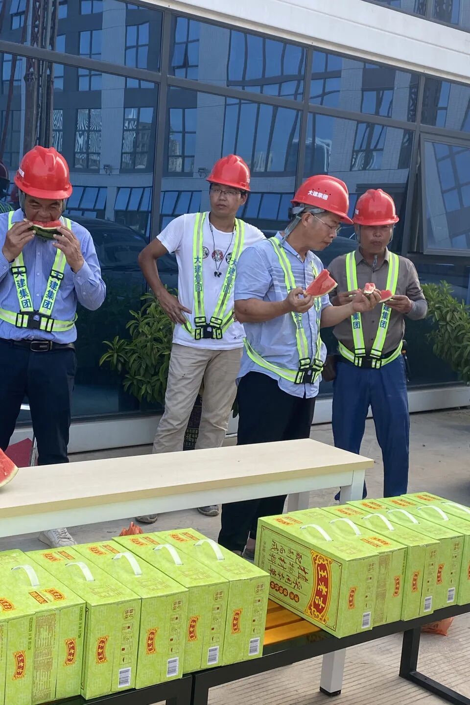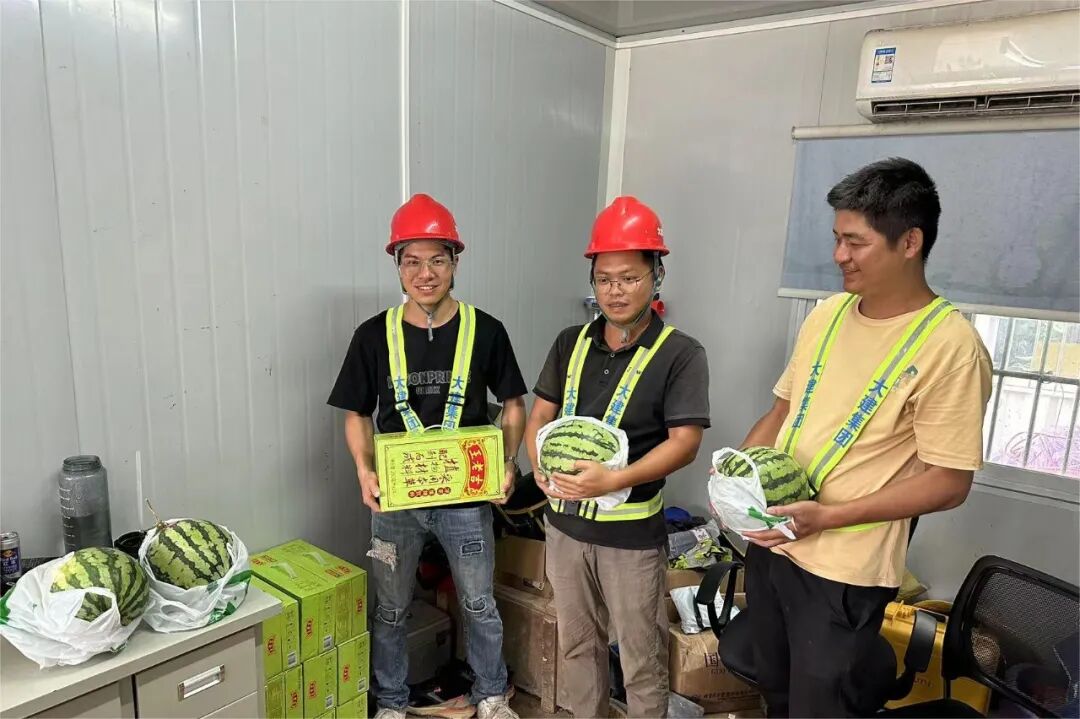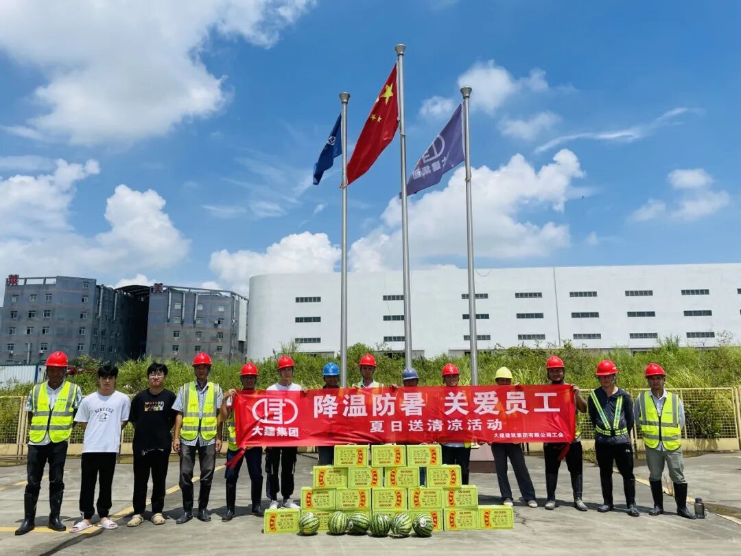 为包管在高温酷暑岗位的修建施工职员能度过一个清凉定心的炎天,表达asiagame集团对项目一线员工的体贴关爱,在炎炎夏日的7月份,asiagame集团工会开展2023年清静月夏日送清凉活动,向项目部坚守岗位、奋战一线的建设者们派发王老吉、西瓜等清凉物资!